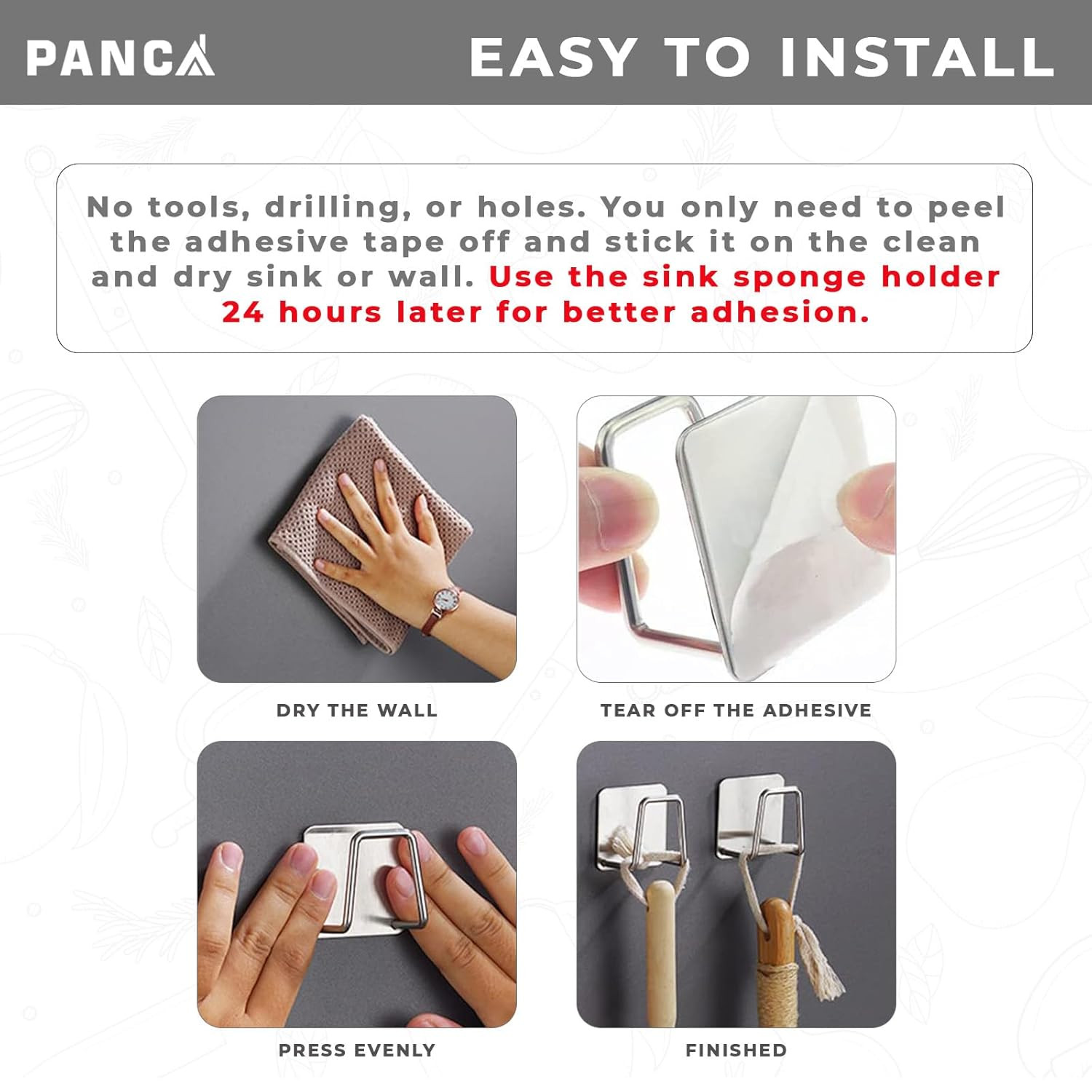 - Sponge holder uses self adhesive method no drilling, not hurt wall, keep the sink dry and clean before sticking. then tear off the paper on the back of the sponge holder stainless, and paste it in the desired place, durable, use for a long time !!