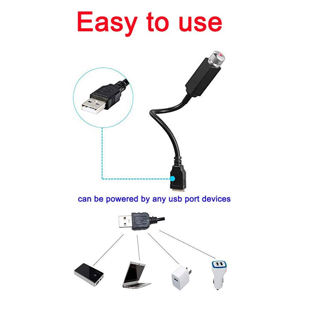 - USB Star Night Lights, U sting Flexible USB Night Lamp Fit All Cars Ceiling Roof Star Lights Interior Ambient Atmosphere for Bedroom decorations,Party,Walls – Plug and Play (Red Color)