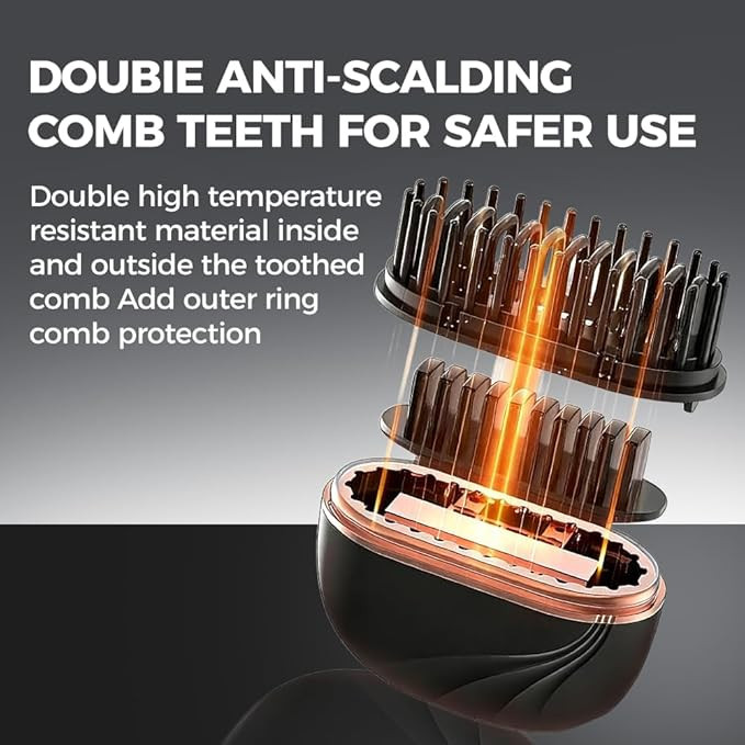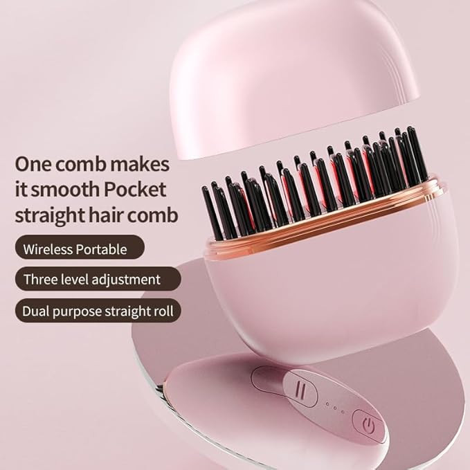 TITLE: Wireless Portable Straight Hair Comb with Protective Lid, Mini Cordless Straightening Comb with Rounded Teeth and Three-Level Temperature Regulation Design