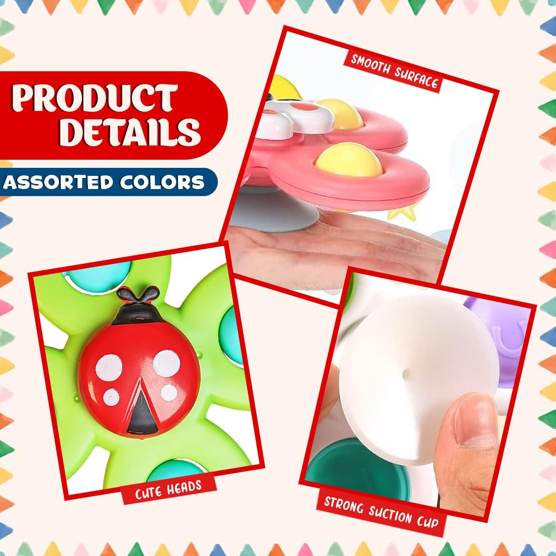 - [Exciting Bathtub Games]: Make bath time more enjoyable with our suction cup spinner toys, designed for kids and babies who love water fun in the bathtub or swimming pool.