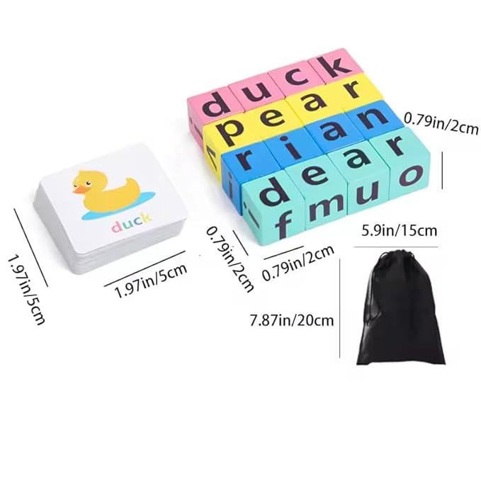 - EDUCATIONAL SET: Complete learning kit includes colourful 20 wooden letter blocks and 64 illustrated flashcards for vocabulary building and spelling practice. You will receive 1 set of alphabet spelling game, including 20 pieces of colorful wooden blocks with letters, 64 pieces of common word cards, and a bell.