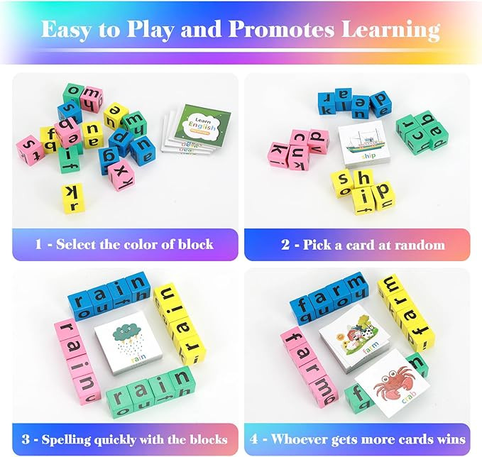 - Educational Toys & Enlightenment Learning Games: Our toys are the educational toys for 3 4 5 6 year old kids, improve children’s learning ability in a fun way and help children improve their spelling ability and cognitive ability. Teach spelling and train memory ability, help children improve their hand-eye coordination.