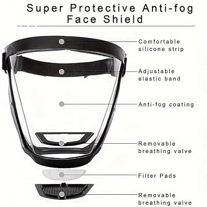 TITEL: Full Face Shield Removable Filter Plug Anti Fog for Kitchen Restaurant Black| Facility Maintenance & Safety | Personal Protective Equip/PPE | Hard Hats & Face Shields | Face Shields