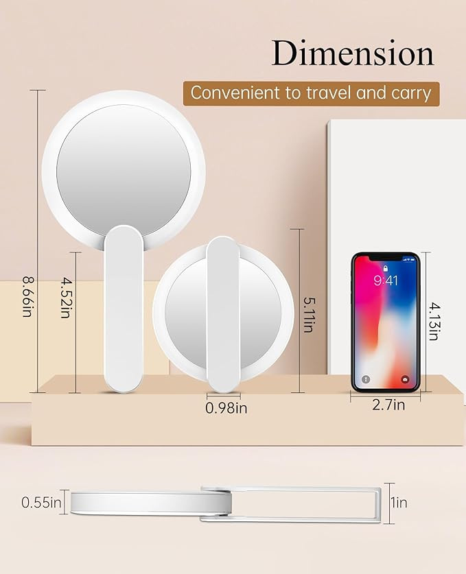 - 【Rotate to Turn on the Light, Portable Travel】The portable mirror uses a rotating handle to turn on the light, portable handheld, more convenient to use.Travel lighted makeup mirror give you a more convenient and happy travel experience.